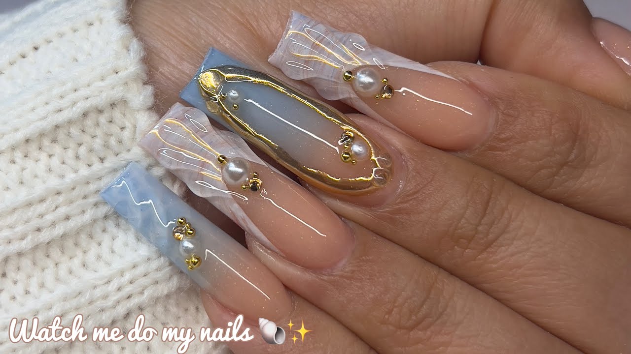 Beach Inspired Nails ~ Seashell & Water Nail Art | Acrylic Nails Tutorial